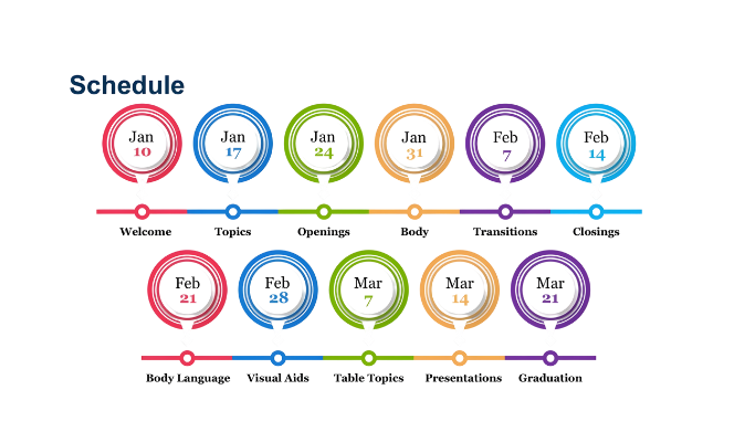 | Jan-17 | Week 2 – Class elections, start of the regular program, and Speech #1 – Icebreaker |